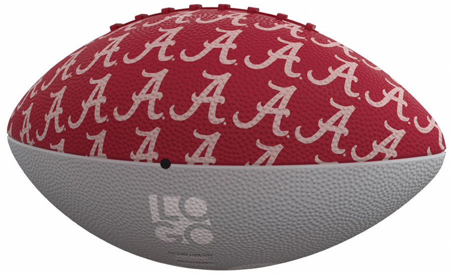 This University of Alabama Crimson Tide Mini Rubber Football is small on size but big on spirit. Features alternating team color panels with two different University of Alabama Crimson Tide marks. Made with rubber molded laces for strong grip and throwing accuracy.